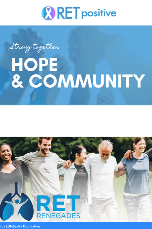 Find information, community, and hope in both of our private Facebook patient and caregiver support groups: RETpositive, open to patients and caregivers dealing with any RET-driven cancer, regardless of tissue of origin, and LUNGevity RET Renegades.